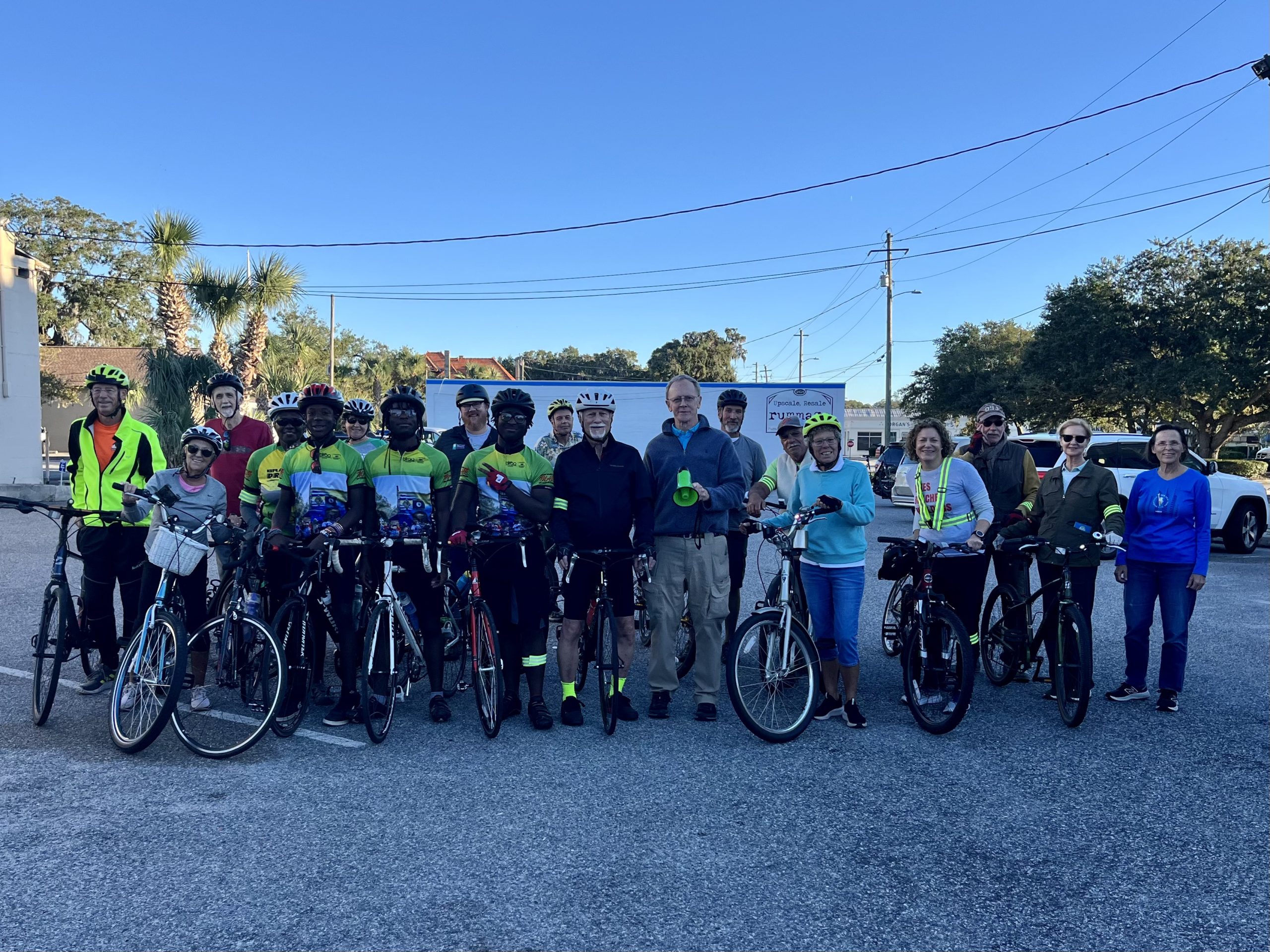 The group gathered in front of the Golden Isles Welcome Center prior to setting off.